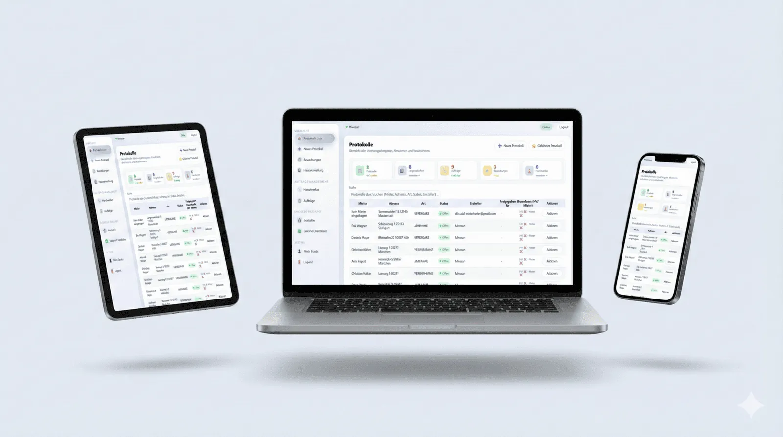 Erstellen Sie rechtssichere Übergabe- und Abnahmeprotokolle in Minuten statt Stunden. Mit Fotos, digitalen Unterschriften und professionellem PDF-Export. Optimiert für Smartphone, Tablet und Desktop.
